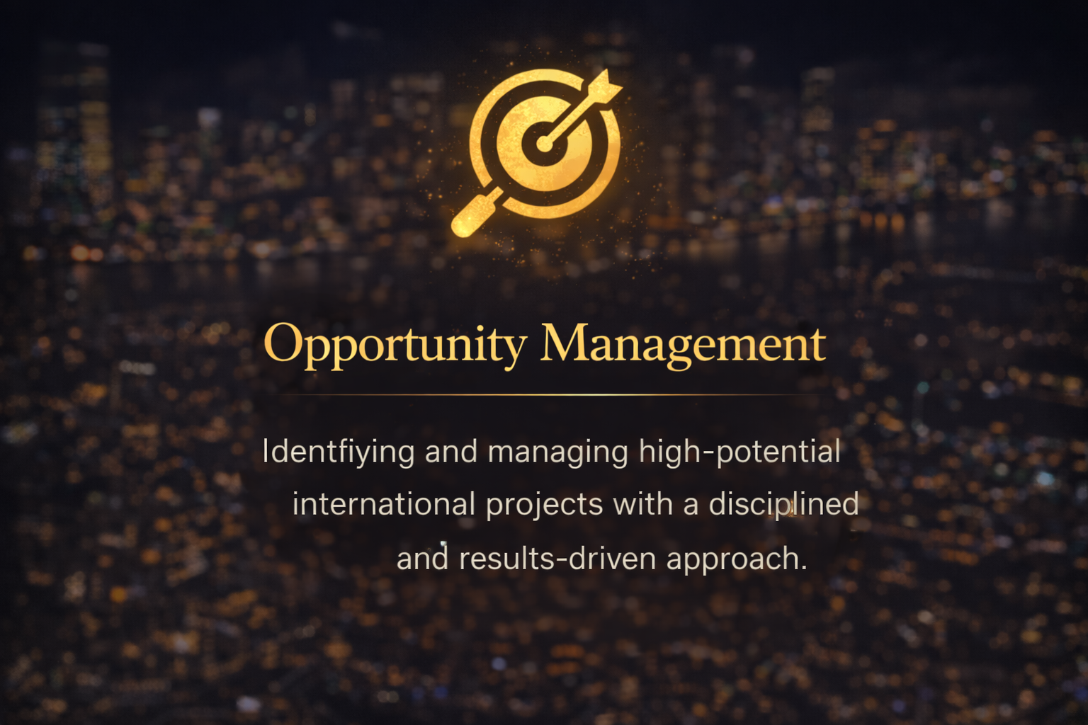 We identify and manage high-potential international projects with a disciplined and results-driven approach.
